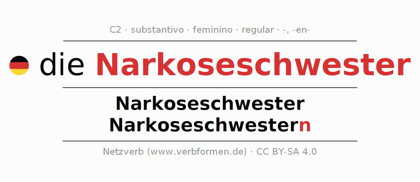 - Singular: die Narkoseschwester, der Narkoseschwester, der Narkoseschwester, die Narkoseschwester