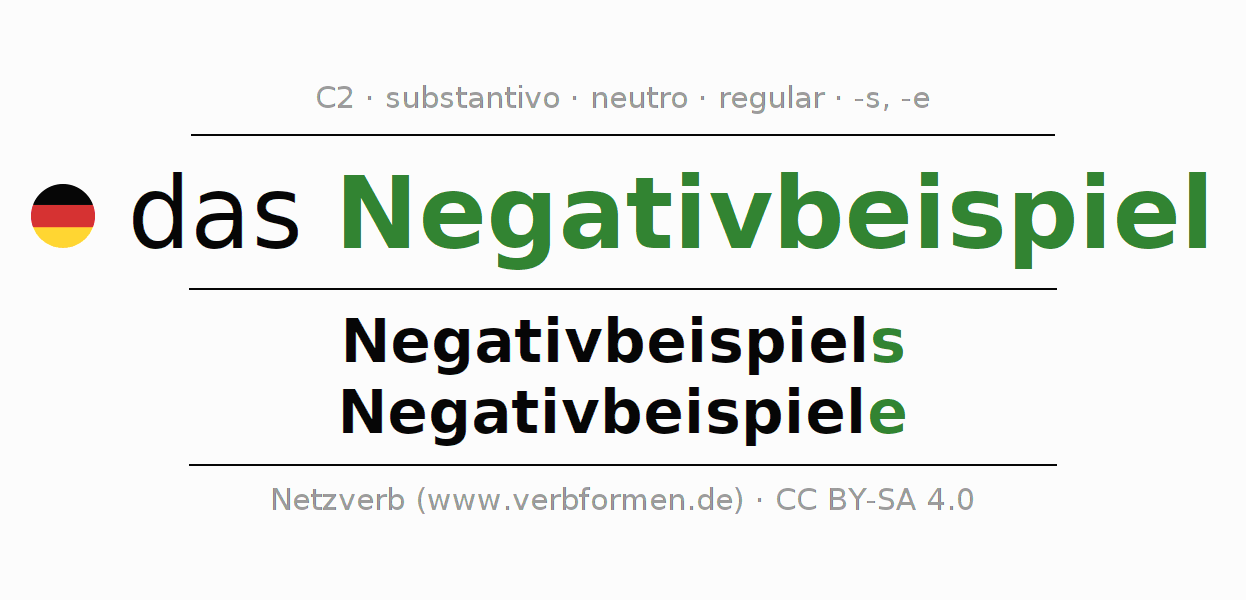 | Nom. | das Negativbeispiel | die Negativbeispiele |