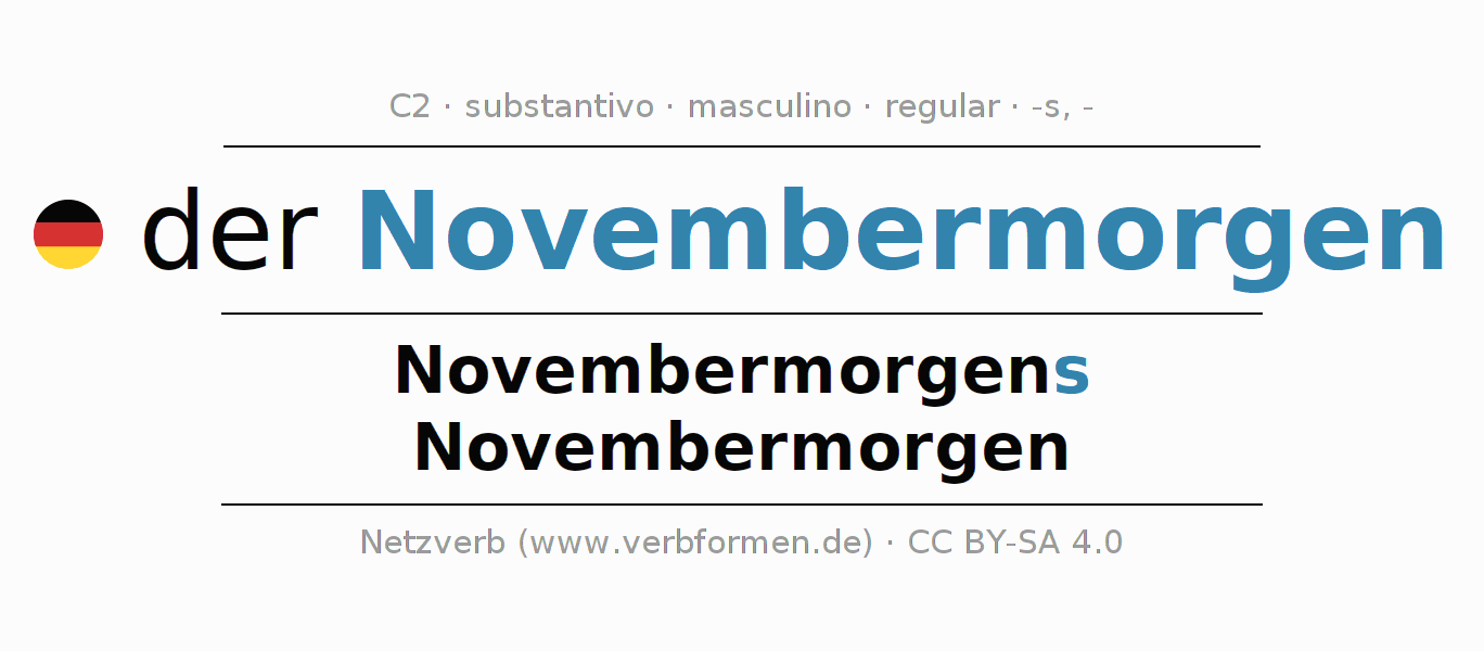 - Singular: der Novembermorgen, des Novembermorgens, dem Novembermorgen, den Novembermorgen