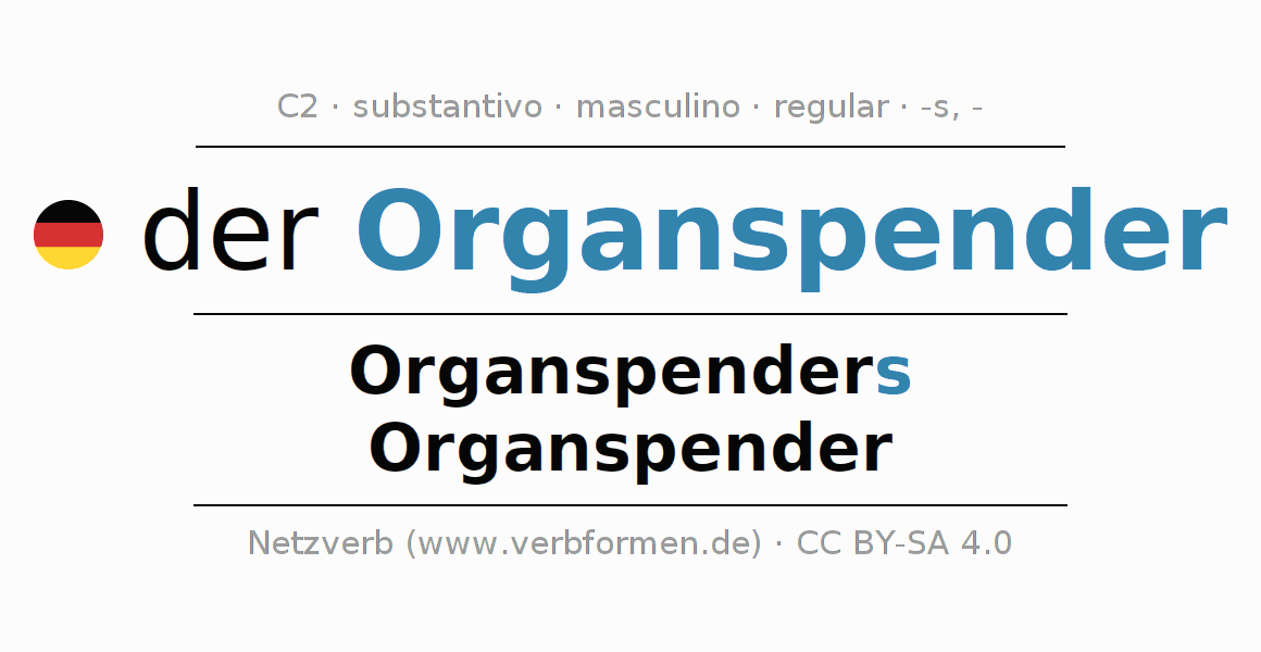 - Singular: der Organspender, des Organspenders, dem Organspender, den Organspender