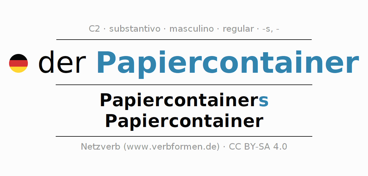 - Plural: die Papiercontainer, der Papiercontainer, den Papiercontainern, die Papiercontainer