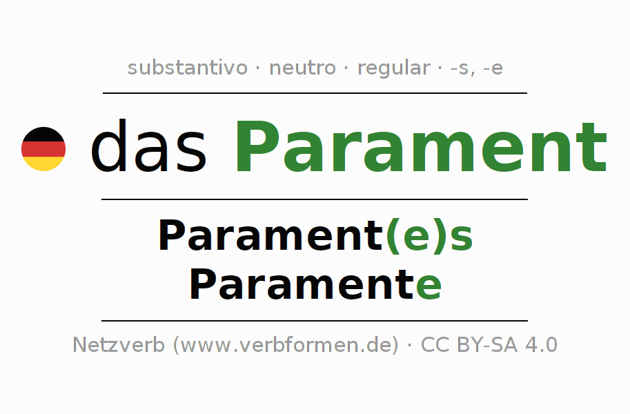 - Plural: die Paramente, der Paramente, den Paramenten, die Paramente