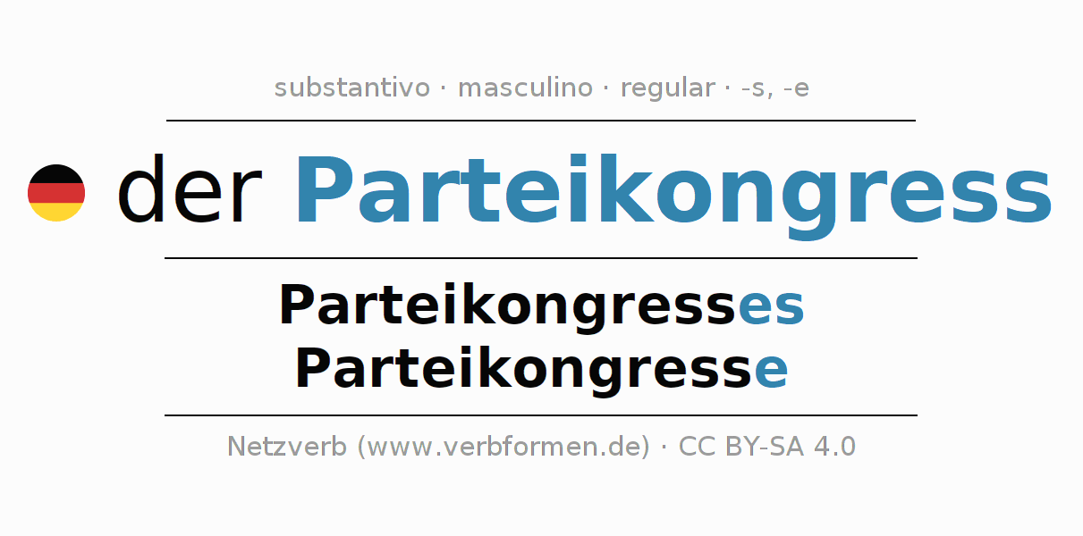 - Singular: der Parteikongress, des Parteikongresses, dem Parteikongress(e), den Parteikongress
