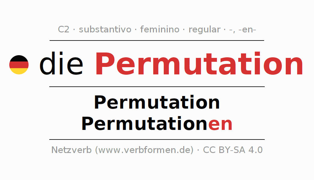 - Plural: die Permutationen, der Permutationen, den Permutationen, die Permutationen