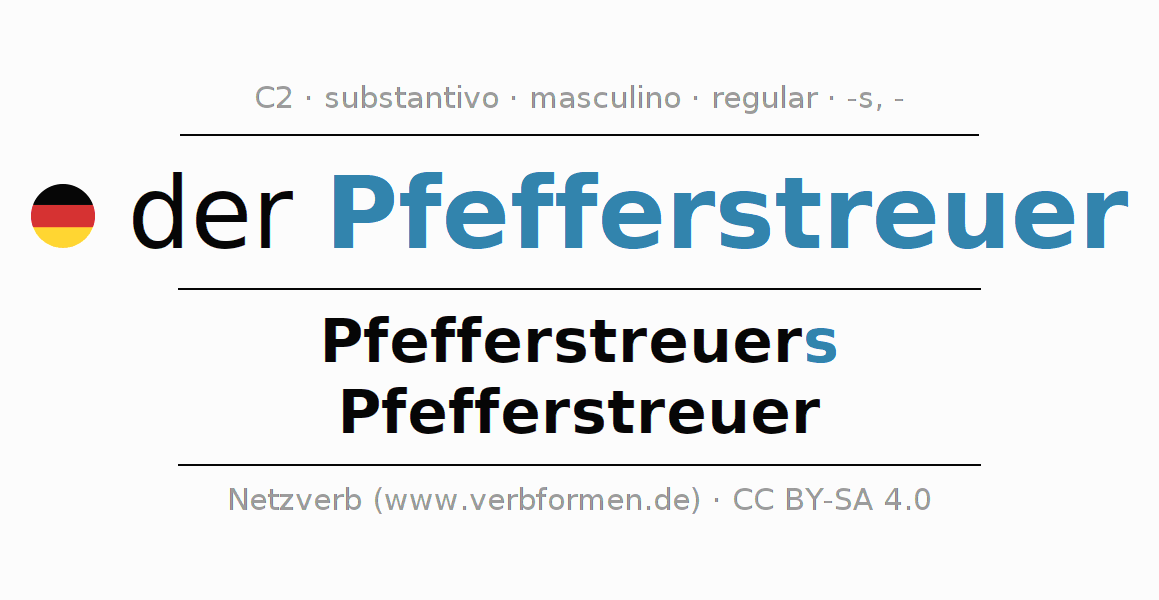 - Singular: der Pfefferstreuer, des Pfefferstreuers, dem Pfefferstreuer, den Pfefferstreuer