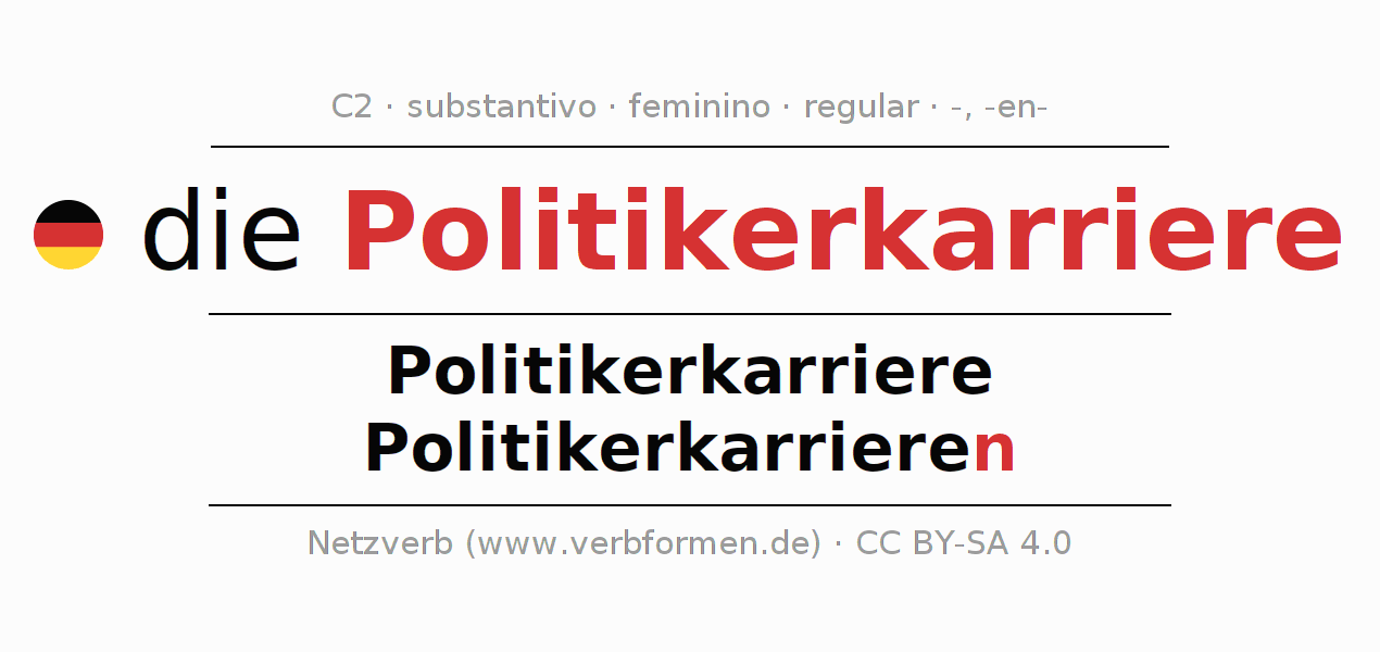 - Singular: die Politikerkarriere, der Politikerkarriere, der Politikerkarriere, die Politikerkarriere