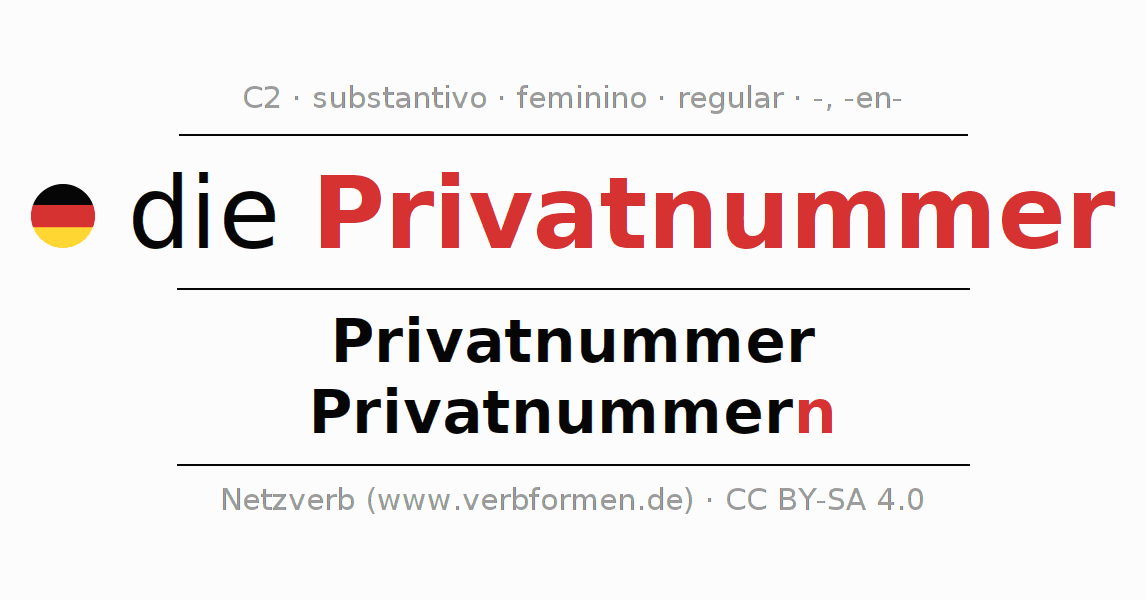 - Singular: die Privatnummer, der Privatnummer, der Privatnummer, die Privatnummer