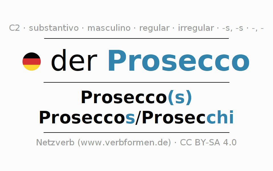 - Singular: der Prosecco, des Prosecco(s), dem Prosecco, den Prosecco