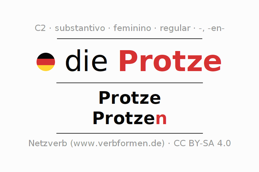 - Plural: die Protzen, der Protzen, den Protzen, die Protzen