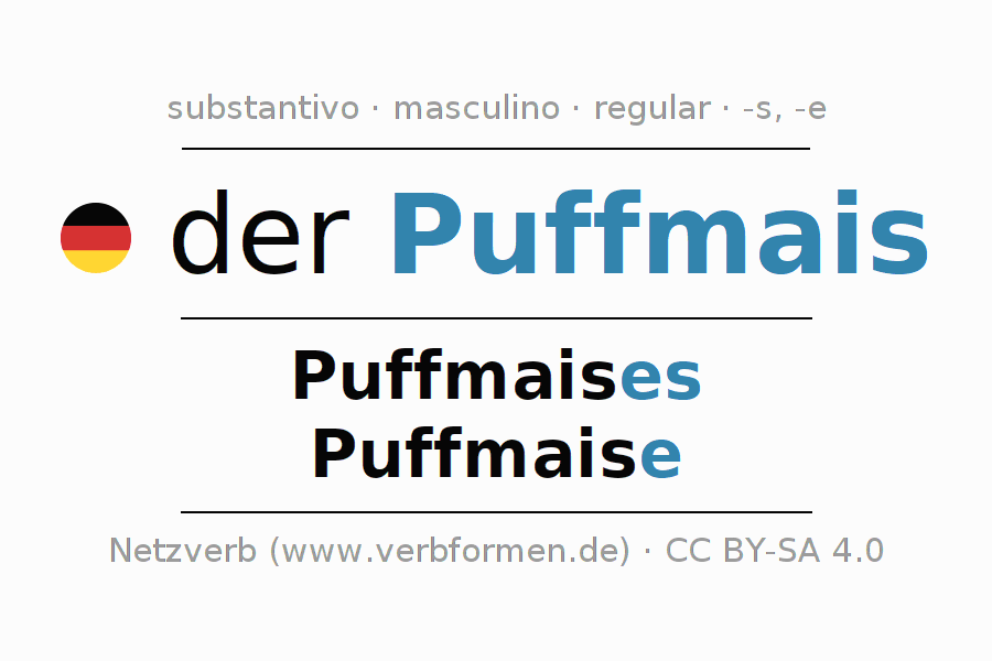 - Singular: der Puffmais, des Puffmaises, dem Puffmais(e), den Puffmais