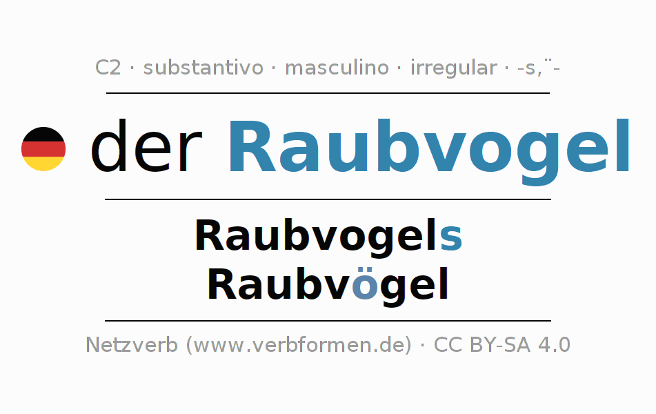 - Singular: der Raubvogel, des Raubvogels, dem Raubvogel, den Raubvogel