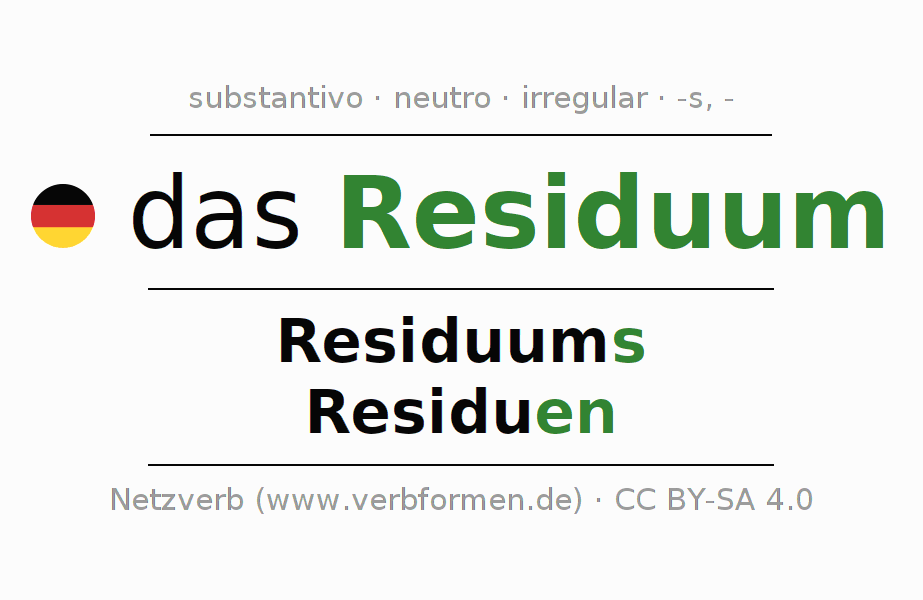 - Singular: das Residuum, des Residuums, dem Residuum, das Residuum