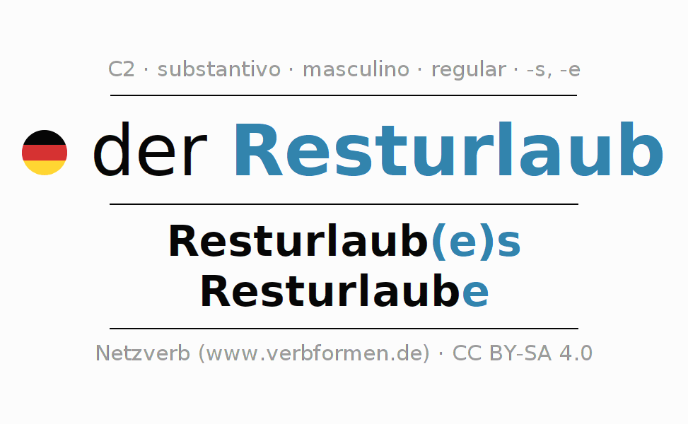 - Singular: der Resturlaub, des Resturlaub(e)s, dem Resturlaub(e), den Resturlaub