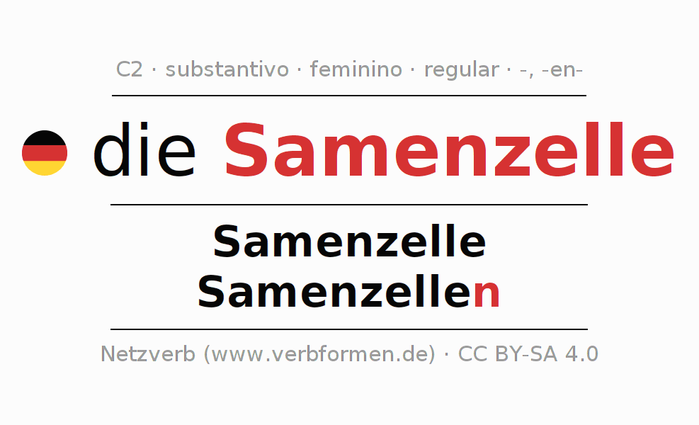 - Plural: die Samenzellen, der Samenzellen, den Samenzellen, die Samenzellen