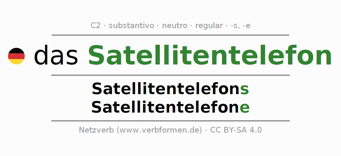 - Singular: das Satellitentelefon, des Satellitentelefons, dem Satellitentelefon, das Satellitentelefon