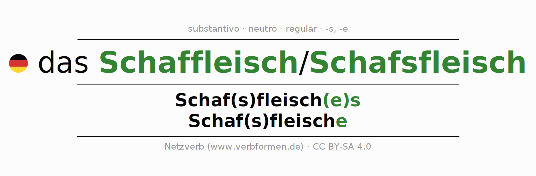 | Nom. | das Schaf(s)fleisch | die Schaf(s)fleische |