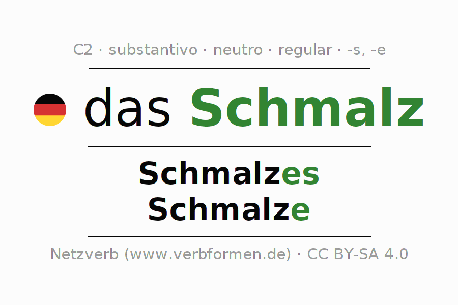 - Singular: das Schmalz, des Schmalzes, dem Schmalz(e), das Schmalz