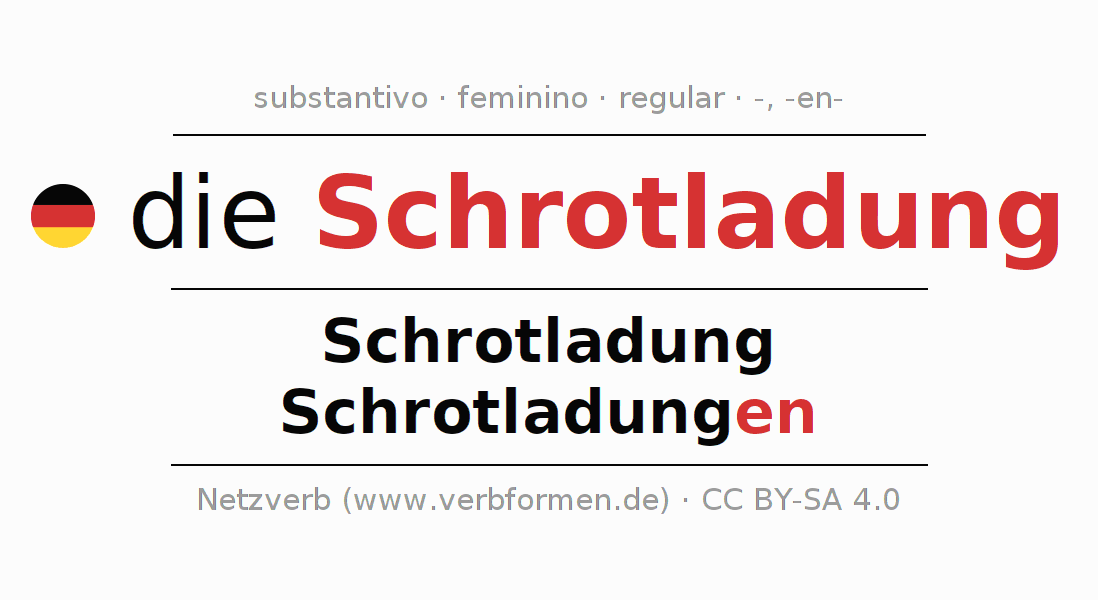 - Singular: die Schrotladung, der Schrotladung, der Schrotladung, die Schrotladung
