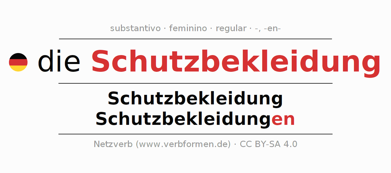 - Singular: die Schutzbekleidung, der Schutzbekleidung, der Schutzbekleidung, die Schutzbekleidung