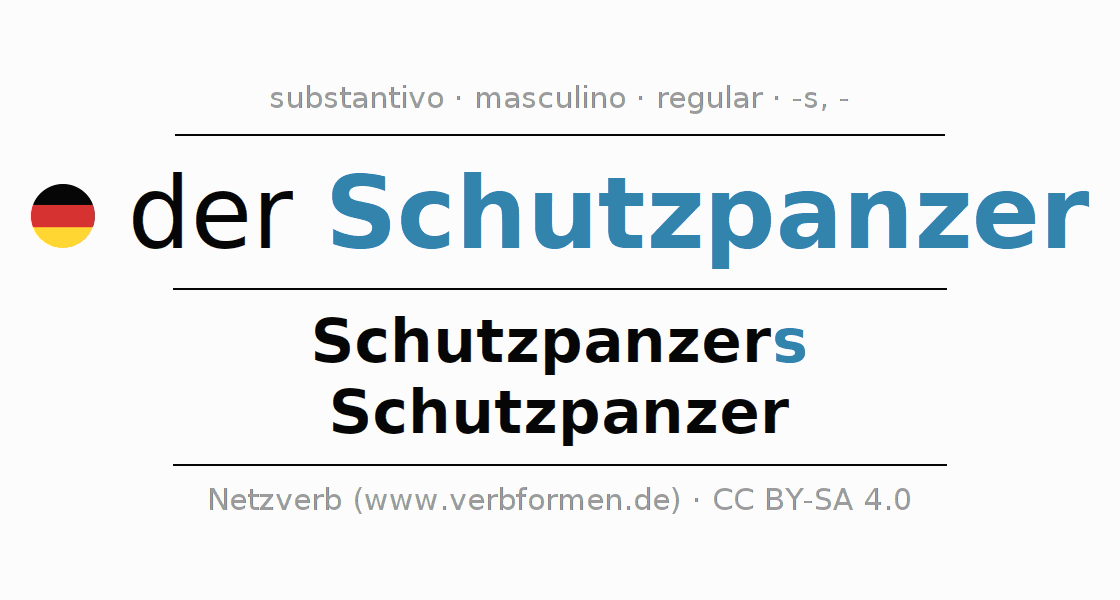 - Singular: der Schutzpanzer, des Schutzpanzers, dem Schutzpanzer, den Schutzpanzer