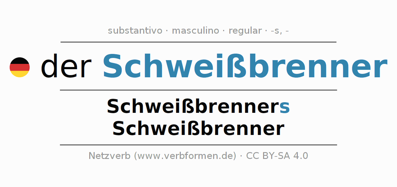 - Singular: der Schweißbrenner, des Schweißbrenners, dem Schweißbrenner, den Schweißbrenner