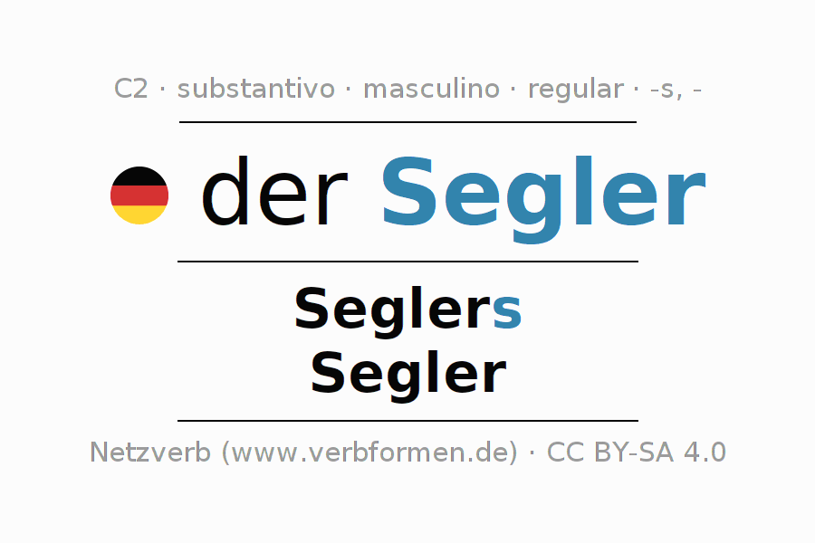 - Singular: der Segler, des Seglers, dem Segler, den Segler
