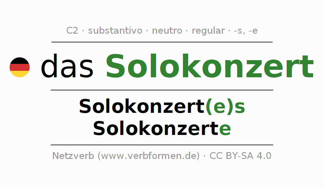 - Singular: das Solokonzert, des Solokonzert(e)s, dem Solokonzert(e), das Solokonzert
