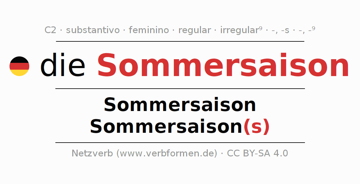 - Singular: die Sommersaison, der Sommersaison, der Sommersaison, die Sommersaison