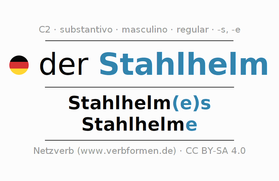 - Singular: der Stahlhelm, des Stahlhelm(e)s, dem Stahlhelm(e), den Stahlhelm