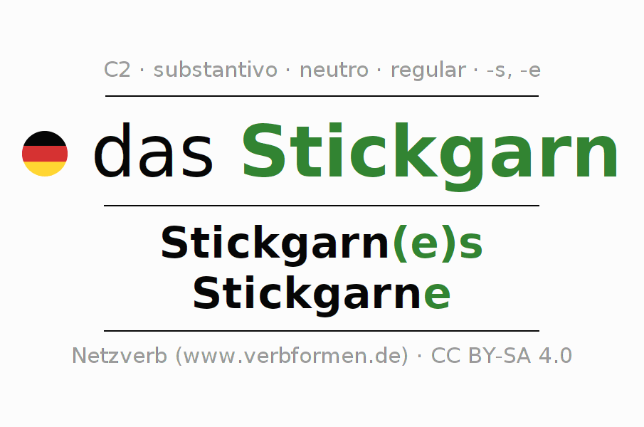 - Plural: die Stickgarne, der Stickgarne, den Stickgarnen, die Stickgarne