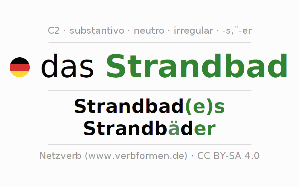 - Plural: die Strandbäder, der Strandbäder, den Strandbädern, die Strandbäder