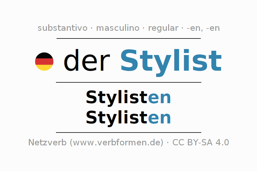 - Singular: der Stylist, des Stylisten, dem Stylisten, den Stylisten