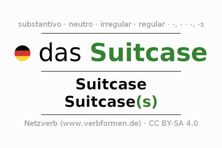 - Plural: die Suitcase(s), der Suitcase(s), den Suitcase(s), die Suitcase(s)