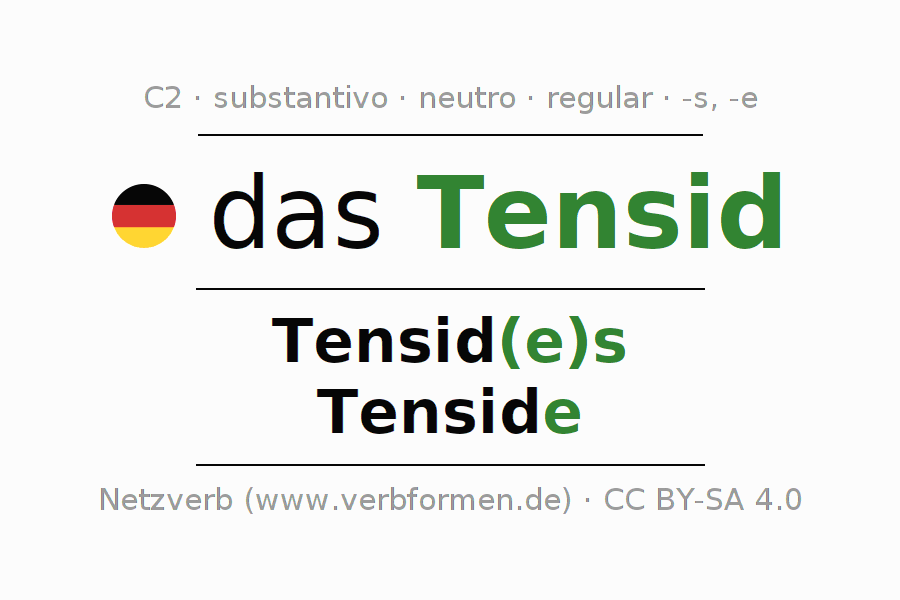 Declinação de Tensid é apresentada em uma tabela com todas as formas no singular e no plural (plural) e em todos os quatro casos: nominativo (1º caso), genitivo (2º caso), dativo (3º caso) e acusativo (4º caso) . Especialmente para os alunos de alemão, a correta declinação da palavra Tensid é fundamental.