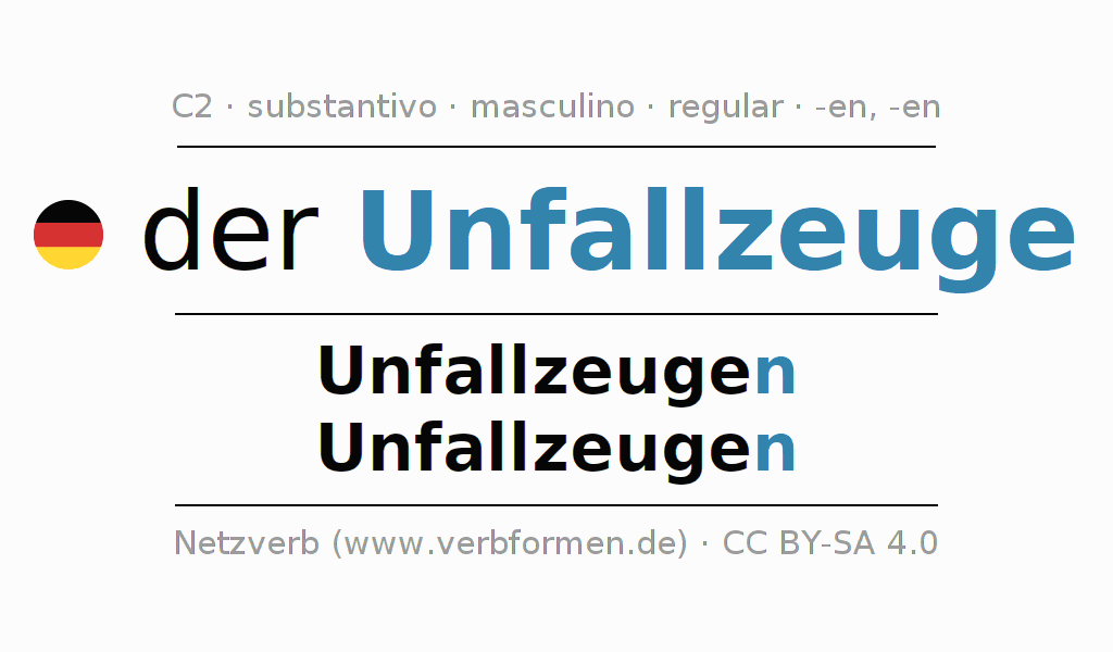 - Singular: der Unfallzeuge, des Unfallzeugen, dem Unfallzeugen, den Unfallzeugen