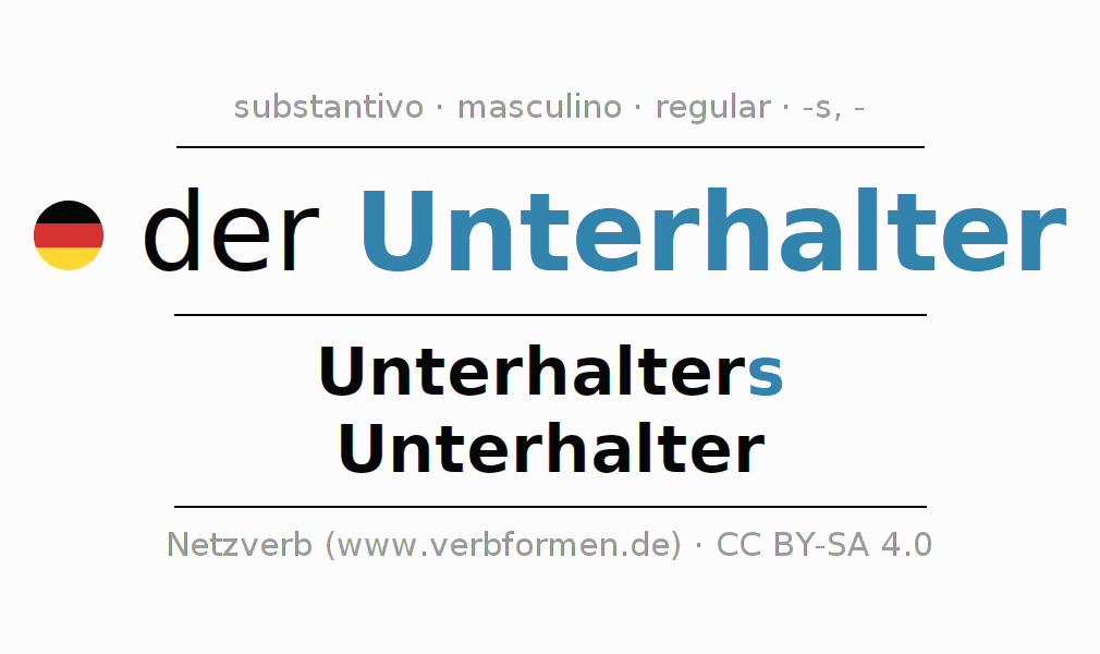 - Singular: der Unterhalter, des Unterhalters, dem Unterhalter, den Unterhalter