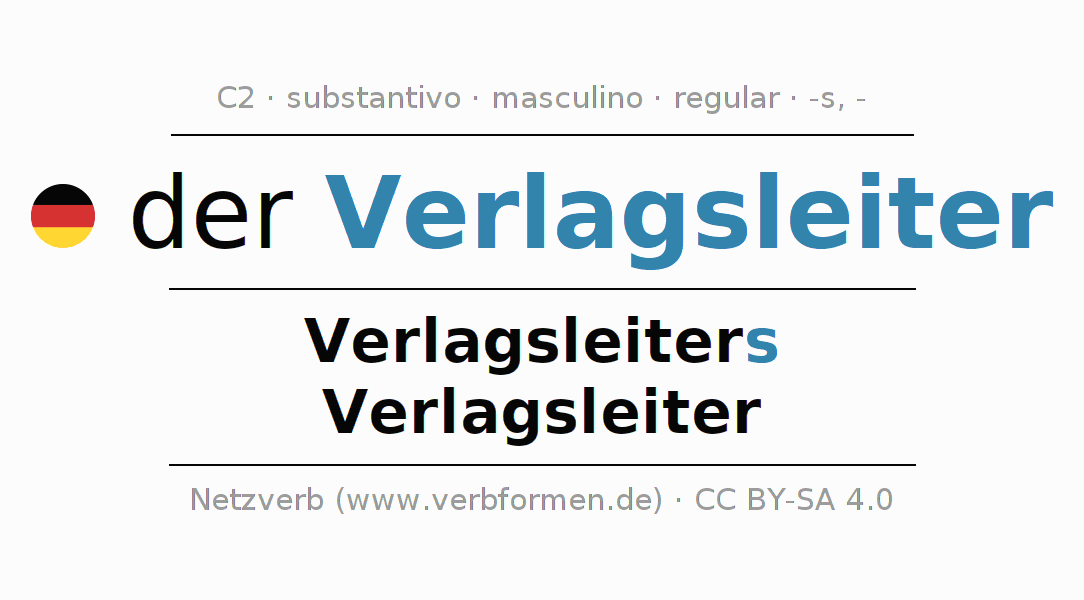 Declinação de Verlagsleiter é apresentada em uma tabela com todas as formas no singular e no plural (plural) e em todos os quatro casos: nominativo (1º caso), genitivo (2º caso), dativo (3º caso) e acusativo (4º caso) . Especialmente para os alunos de alemão, a correta declinação da palavra Verlagsleiter é fundamental.
