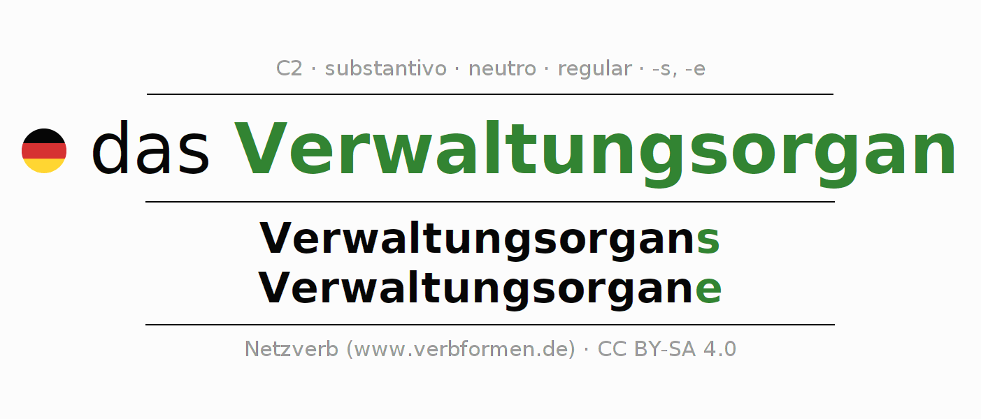 - Singular: das Verwaltungsorgan, des Verwaltungsorgans, dem Verwaltungsorgan, das Verwaltungsorgan