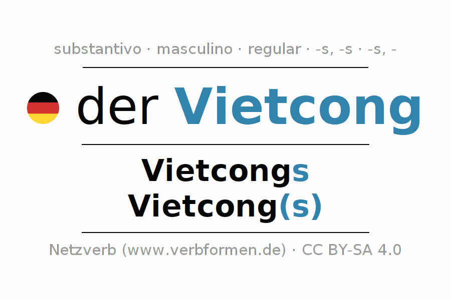 - Plural: die Vietcong(s), der Vietcong(s), den Vietcong(s), die Vietcong(s)