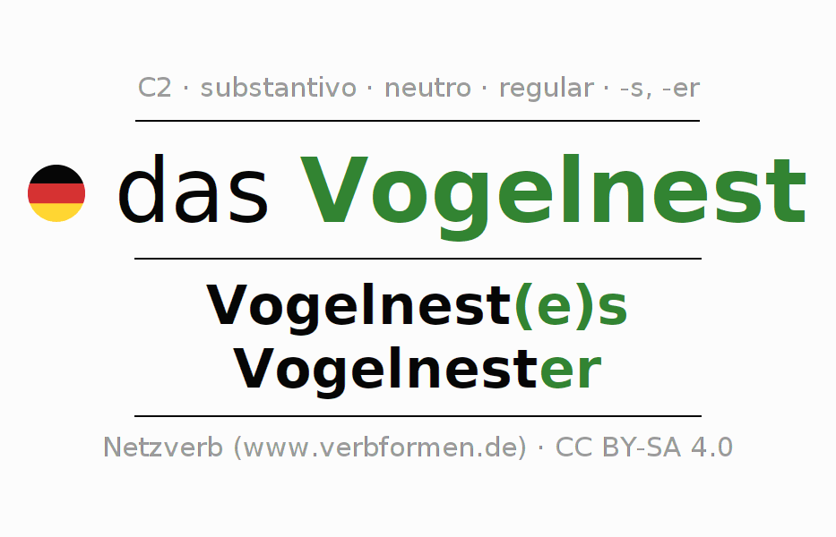 | Dat. | dem Vogelnest(e) | den Vogelnestern |