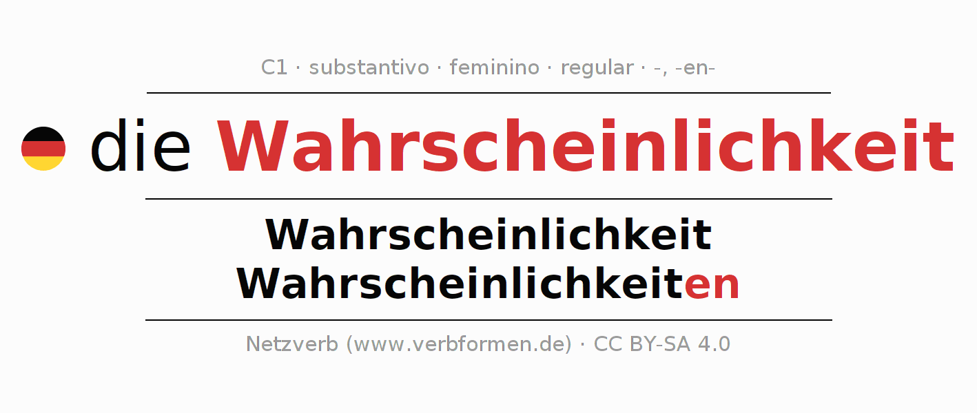 - Singular: die Wahrscheinlichkeit, der Wahrscheinlichkeit, der Wahrscheinlichkeit, die Wahrscheinlichkeit