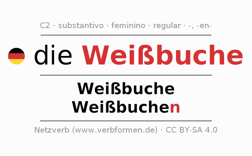 - Singular: die Weißbuche, der Weißbuche, der Weißbuche, die Weißbuche