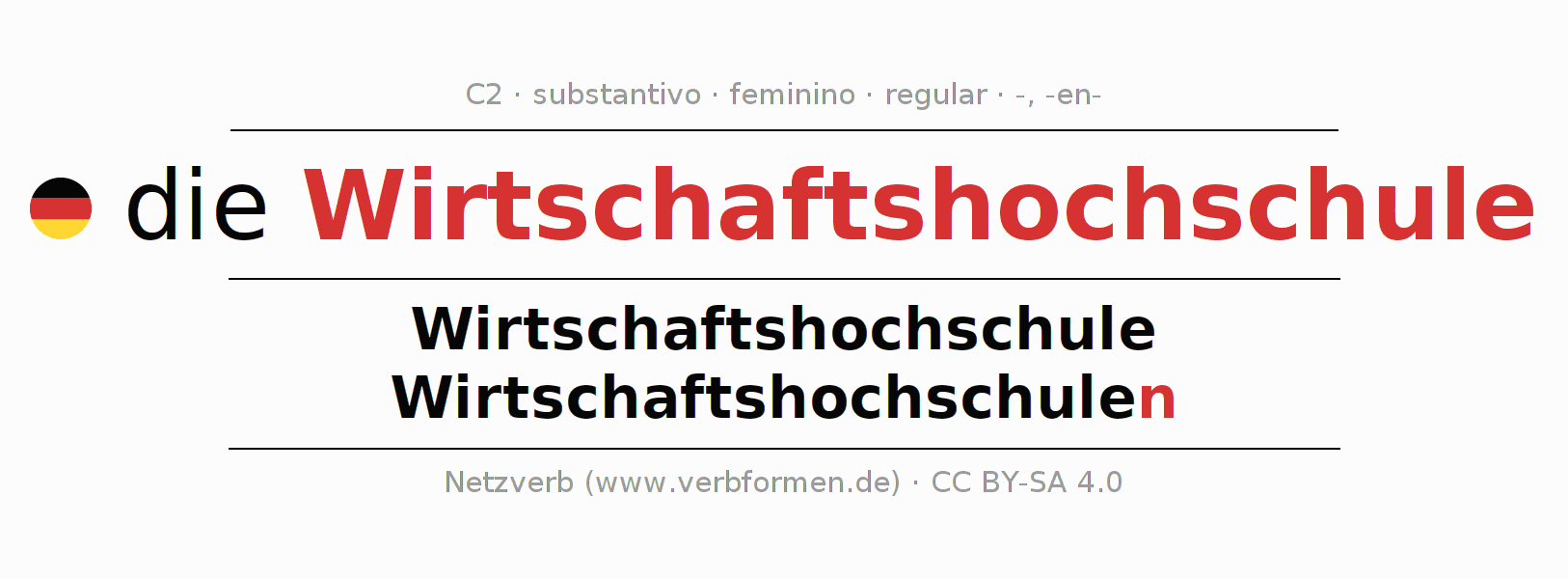 | Nom. | die Wirtschaftshochschule | die Wirtschaftshochschulen |