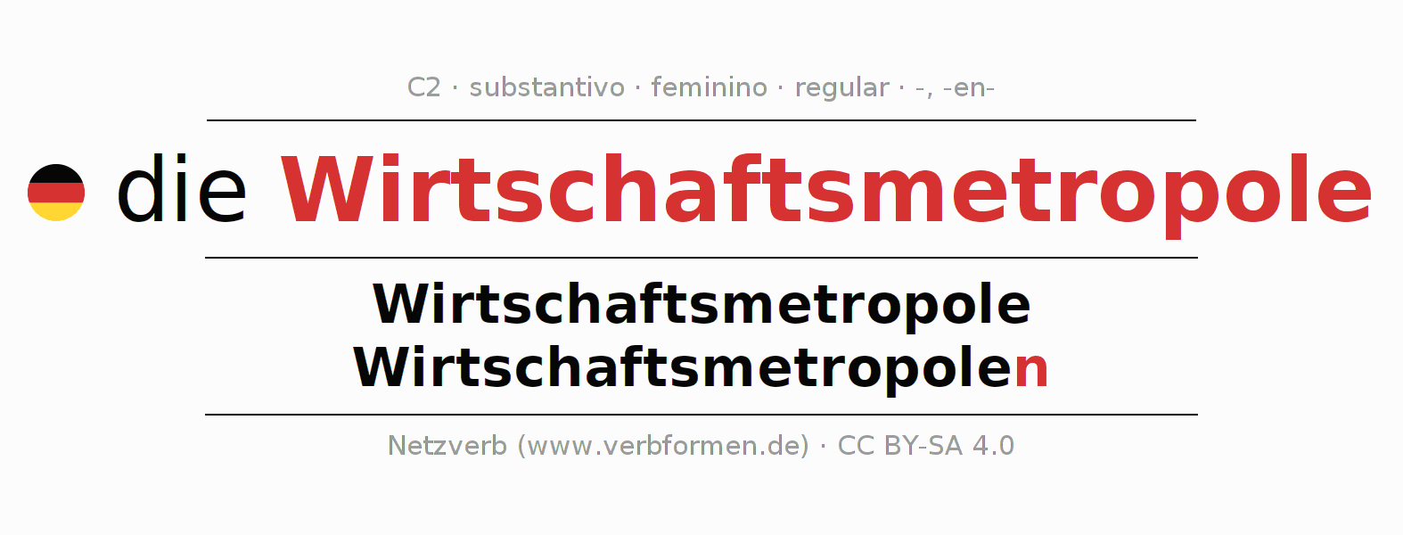 | Nom. | die Wirtschaftsmetropole | die Wirtschaftsmetropolen |