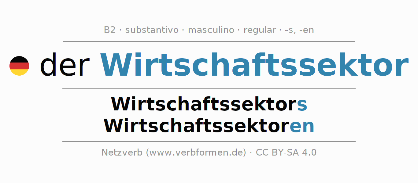 - Singular: der Wirtschaftssektor, des Wirtschaftssektors, dem Wirtschaftssektor, den Wirtschaftssektor
