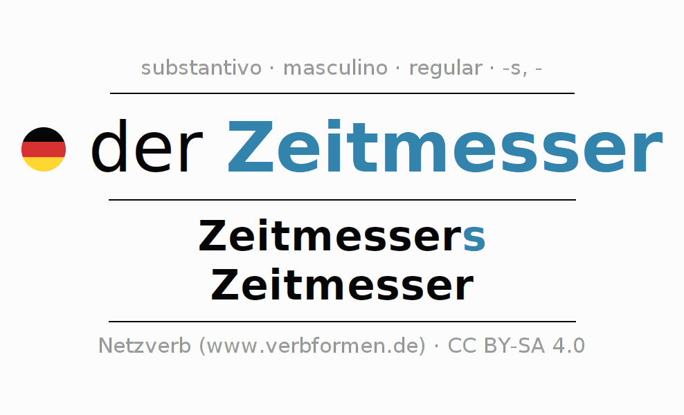 - Singular: der Zeitmesser, des Zeitmessers, dem Zeitmesser, den Zeitmesser