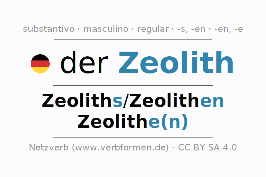 - Plural: die Zeolithe(n), der Zeolithe(n), den Zeolithen, die Zeolithe(n)