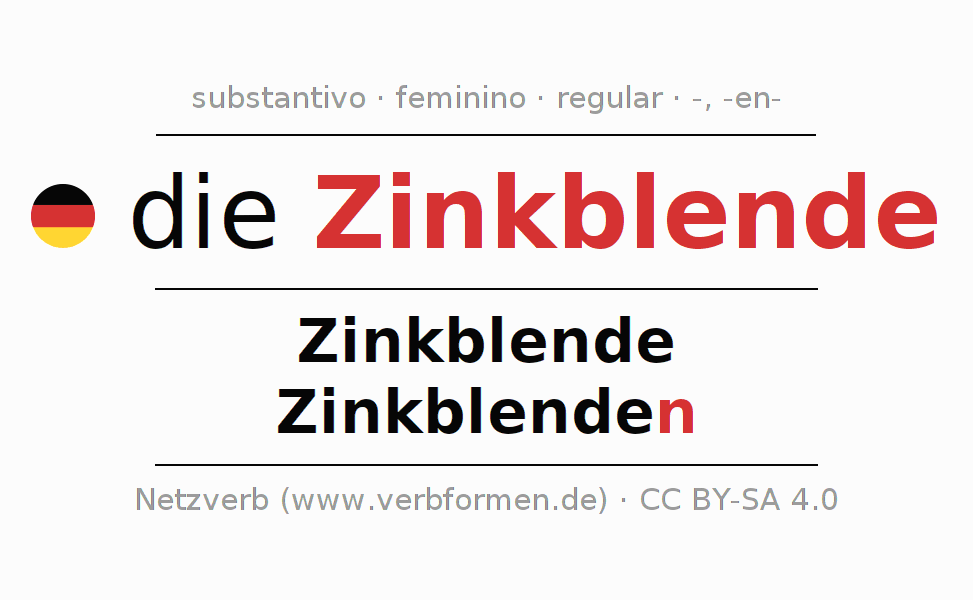 Declinação de Zinkblende no singular e no plural em todos os casos