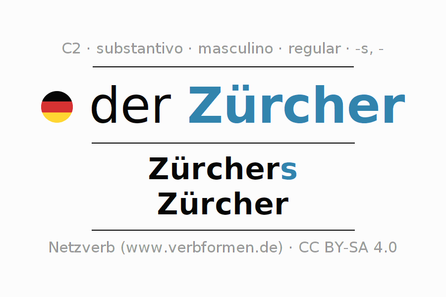 - Singular: der Zürcher, des Zürchers, dem Zürcher, den Zürcher