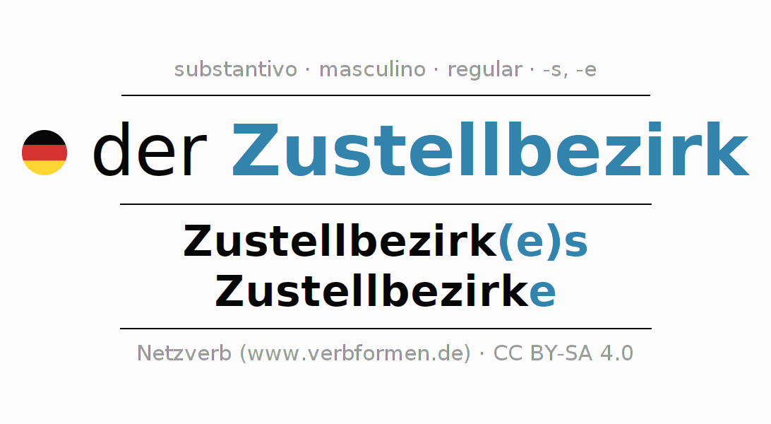 - Plural: die Zustellbezirke, der Zustellbezirke, den Zustellbezirken, die Zustellbezirke